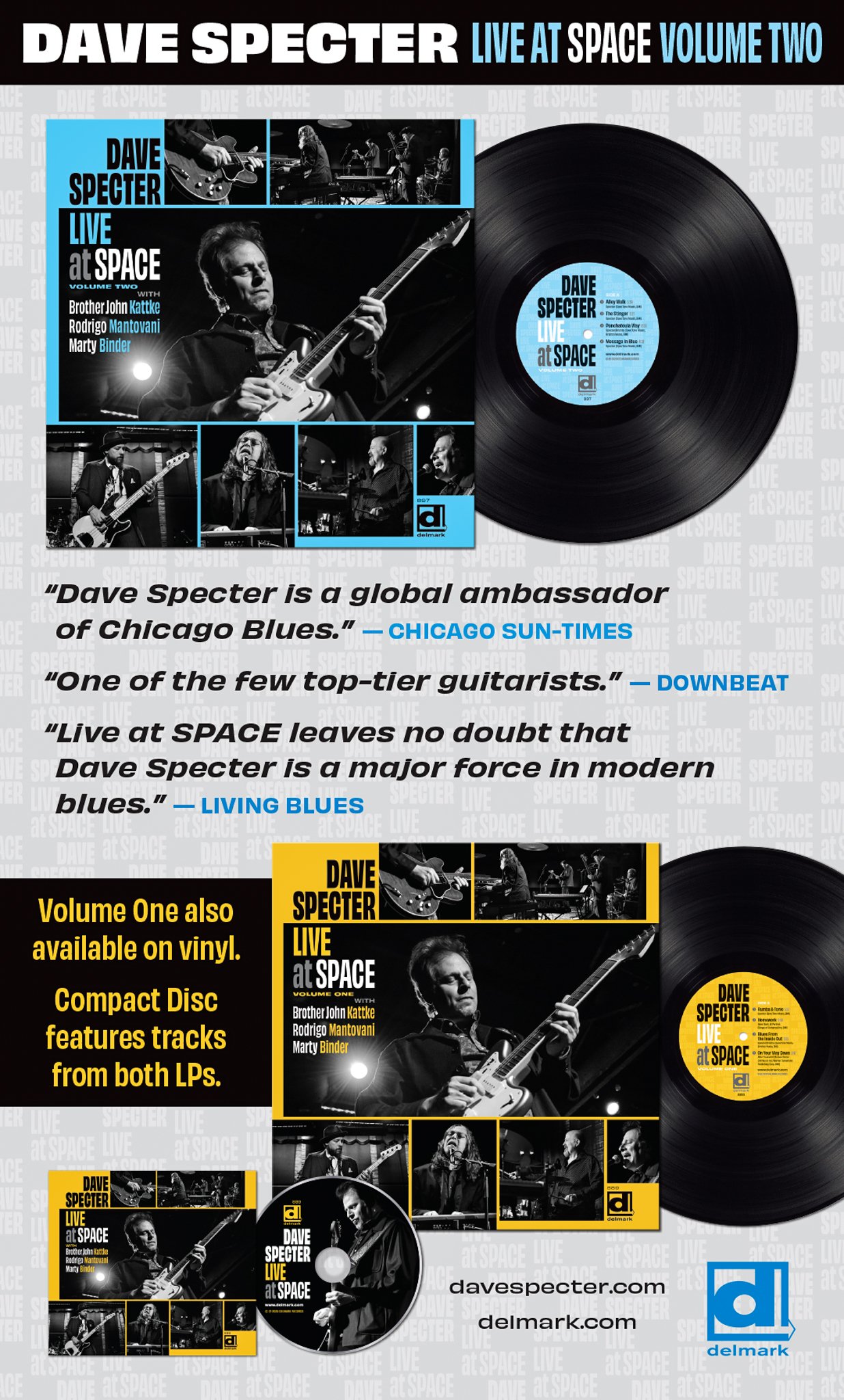 Chicago Blues Guide: “On his most recent Delmark release, his 13th for the label, Specter and his crack band (Brother John Kattke, Marty Binder and Rodrigo Mantovani) offer a set of tunes recorded at SPACE in Evanston IL which demonstrate why Dave Specter is among the pantheon of great modern blues musicians. Live At SPACE is a recording which captures Chicago’s finest blues musicians at one of Chicago’s best sounding venues”
